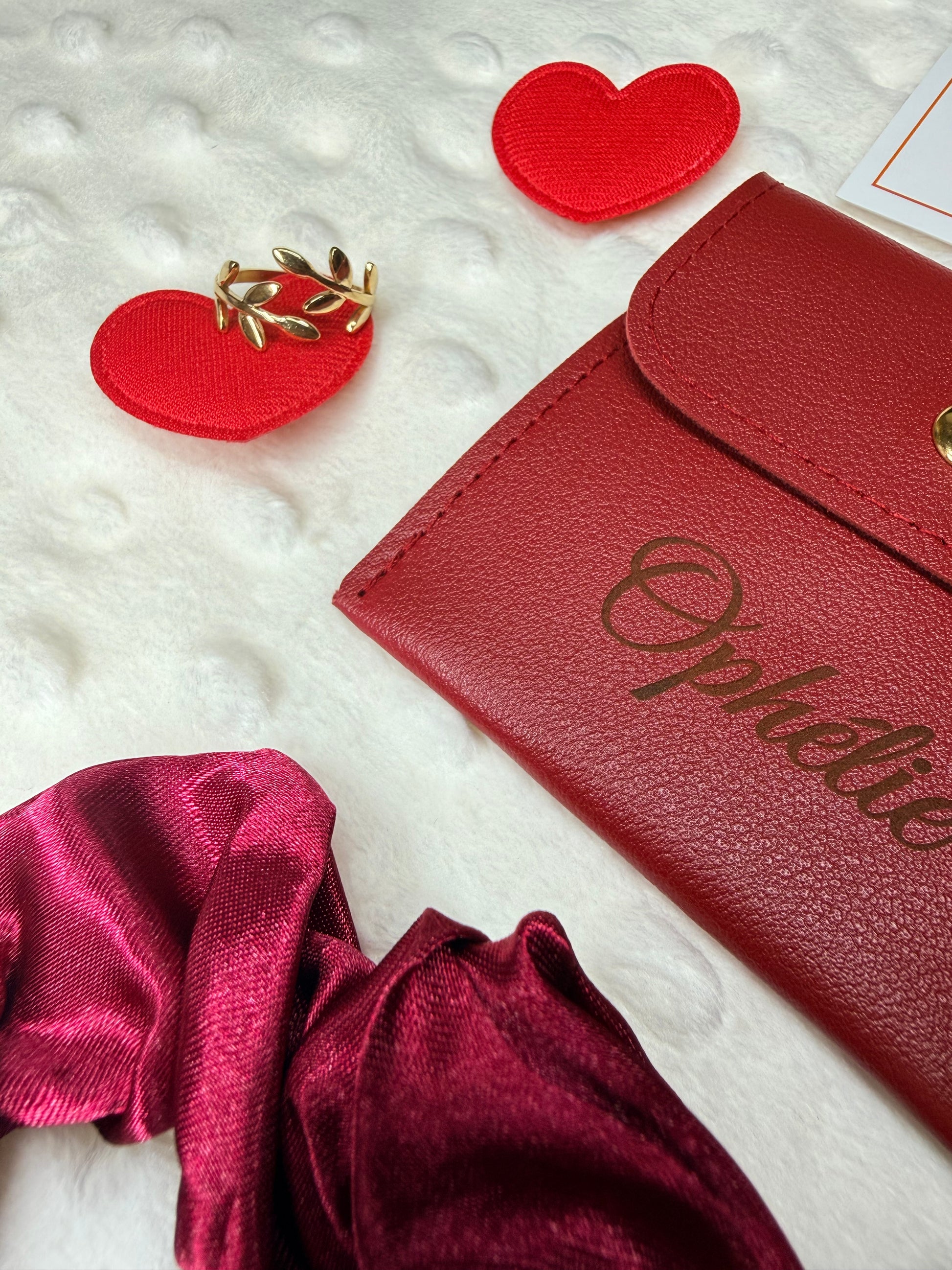 - Une pochette en cuire gravée