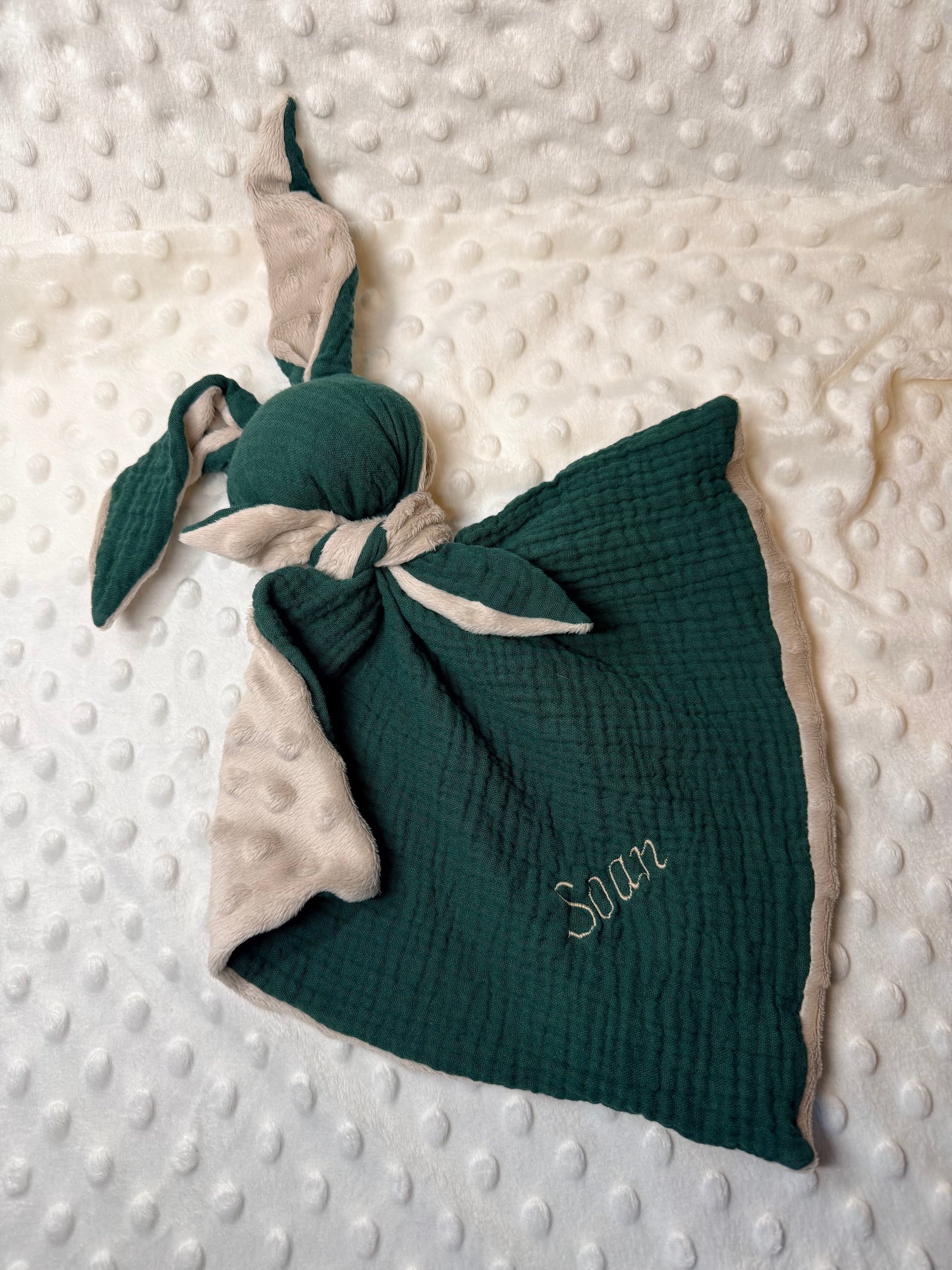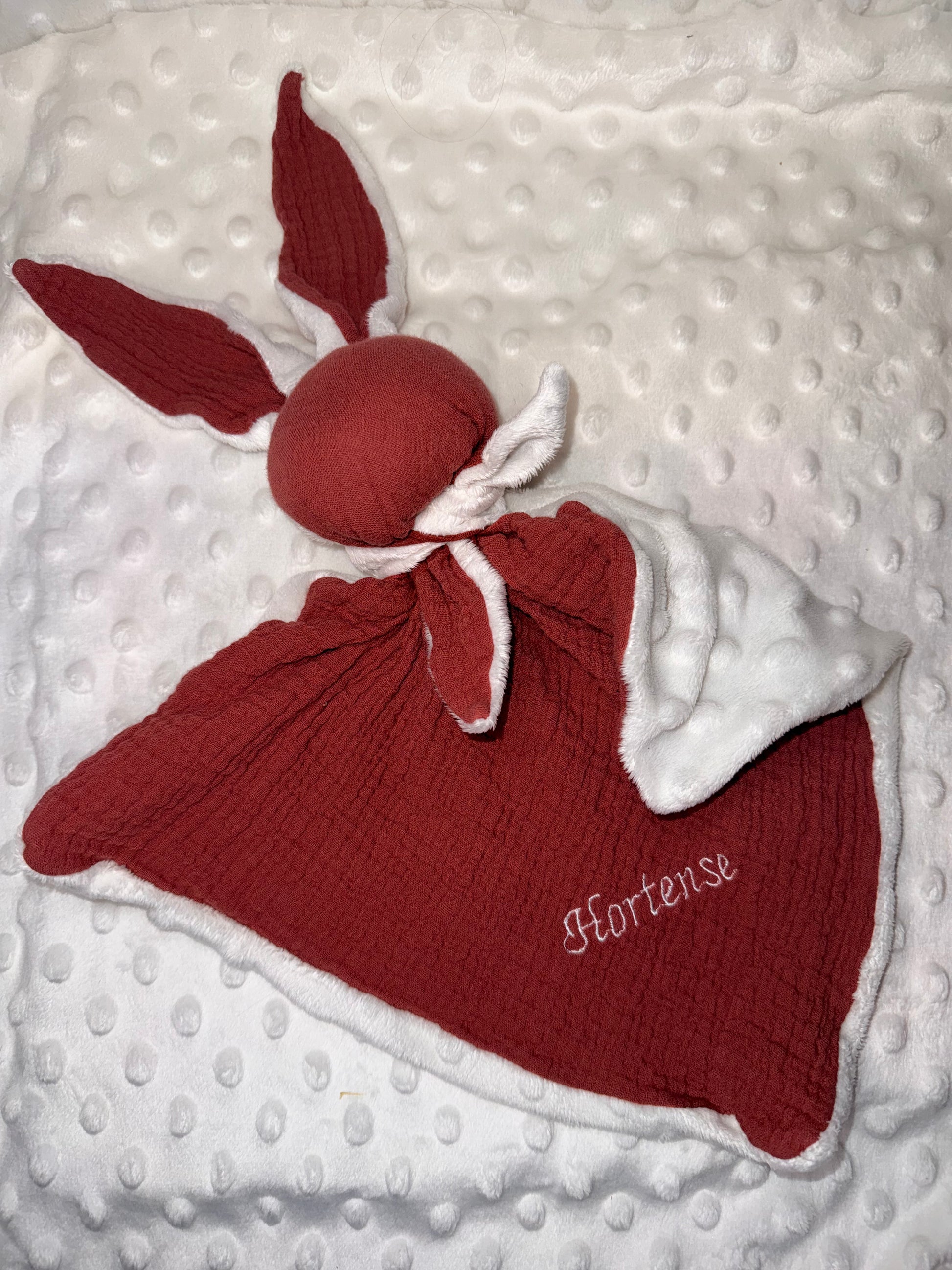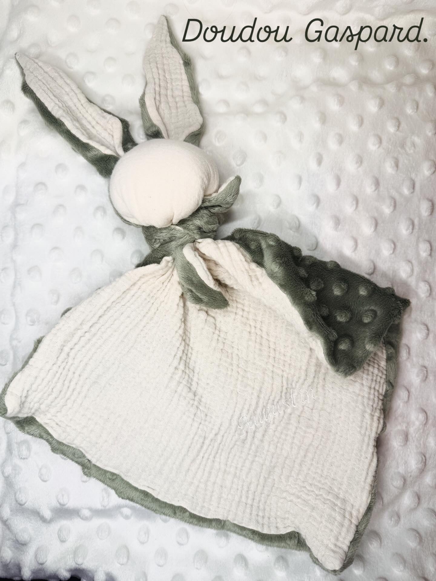 un doudou fait main, broder au prénom de votre enfant. Personnalisable pour un doudou unique.